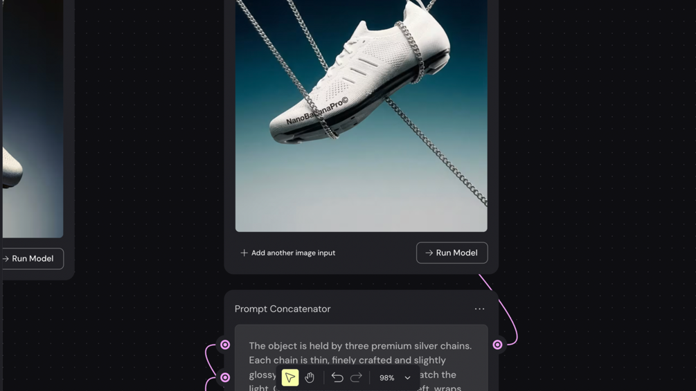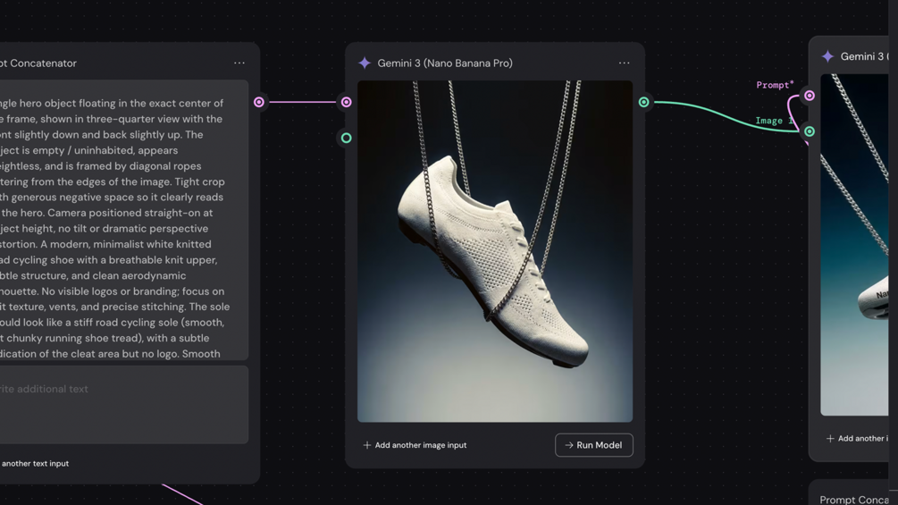 This workflow walks you through my exact Weavy setup to go from a single prompt → polished hero still → 5-second product video where the object floats, the chains subtly move, and everything tightens into a final premium composition. Everything is broken down into modular blocks – Composition, Product, Background, Lighting, Analog Film Look, Details, Format + Motion – so you can swap the shoe for any product without rewriting your prompts from scratch.